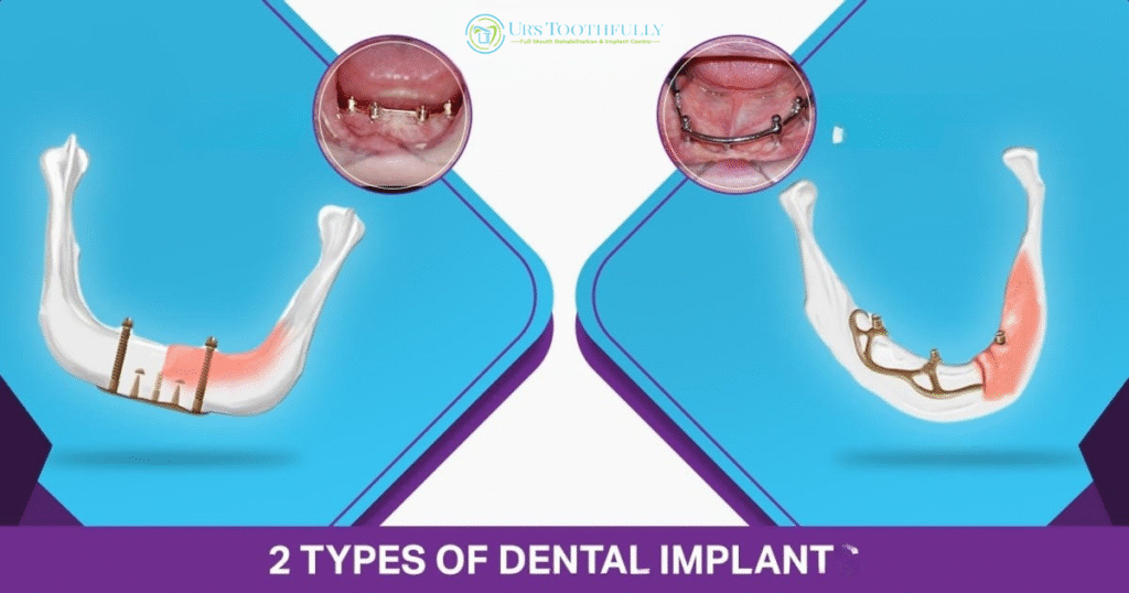 - Full mouth dental implants: If a patient has lost most of his/her teeth, then they can opt for a full mouth dental implant. The most famous among them are All-on-4 and All-on-6 dental implants. They provide strength while maintaining the aesthetic outlook.